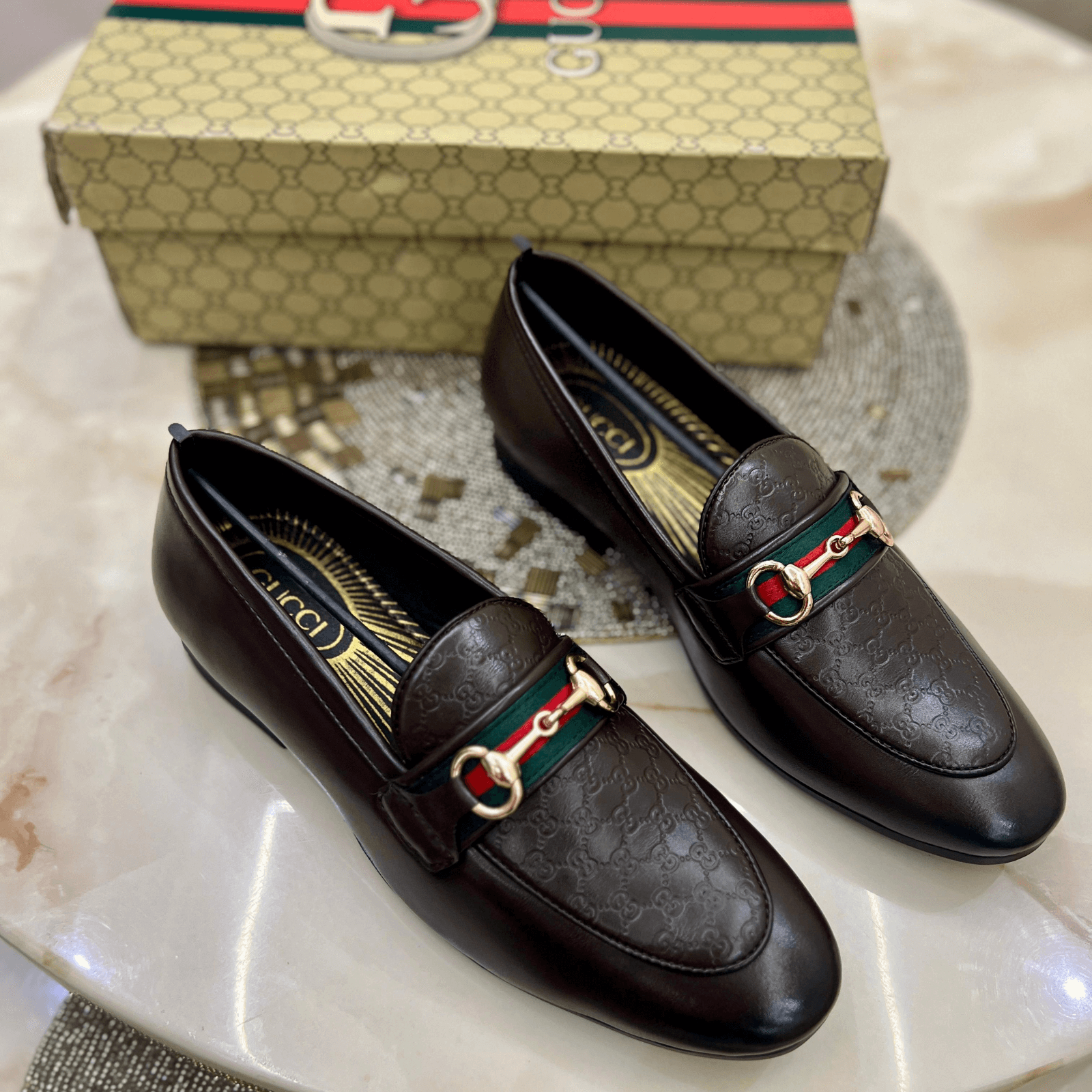 Explore our collection of first copy Gucci loafers and moccasins for men. Perfect for any occasion, they offer style, comfort, and luxury.